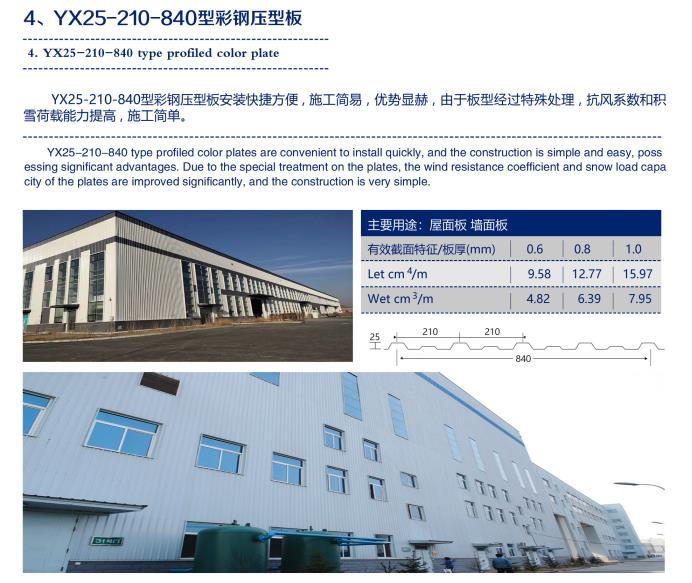 YX25-210-840型彩鋼壓型板